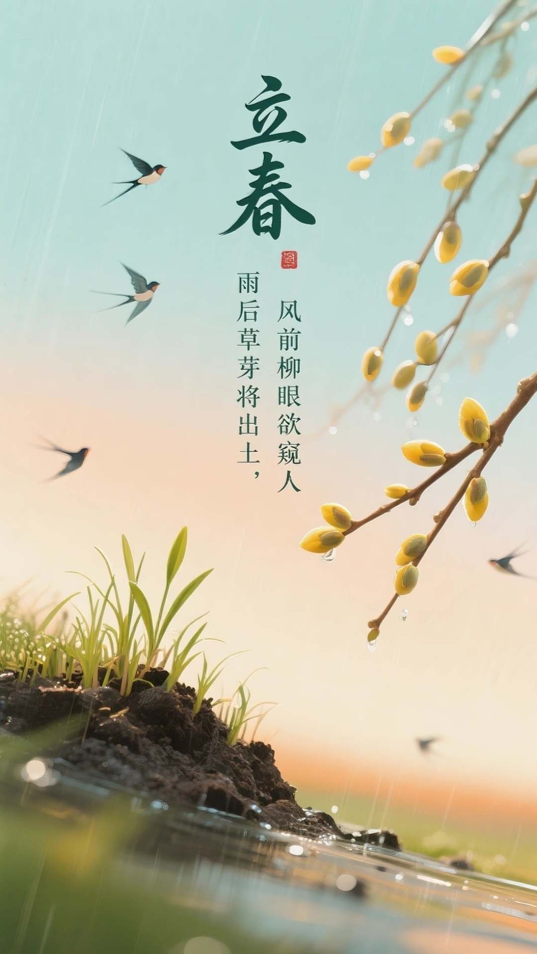 雨后草芽将出土,风前柳眼欲窥人。