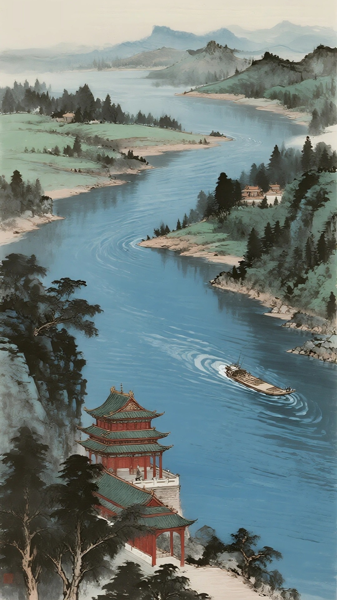 万有千里流无穷兮,逶逶迤迤志必东兮。